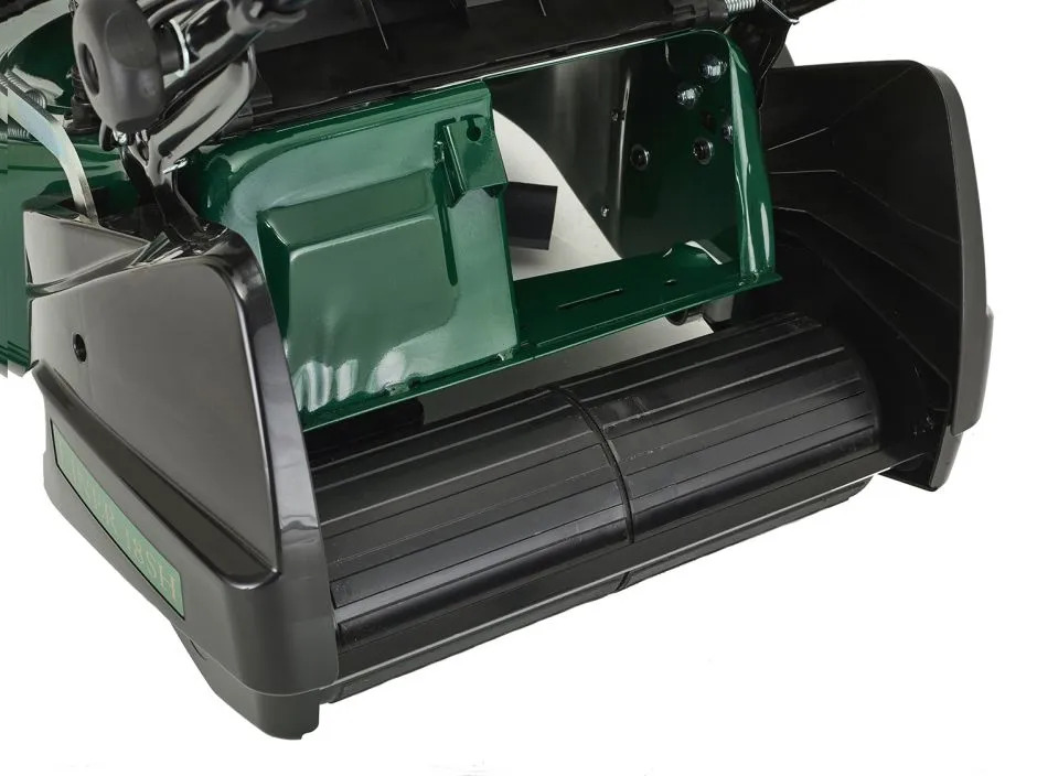 With the power-driven rear roller, you can mow up garden inclines, tough patches of grass and rough ground with the utmost ease. Power your turns and protect your turf with the front-fitted, anti-scalp front skid plate and 5 pre-set heights of cut, adjustable from 20mm to 70mm. Finally, the handy hosepipe connection point makes removing corrosive underdeck debris a breeze.