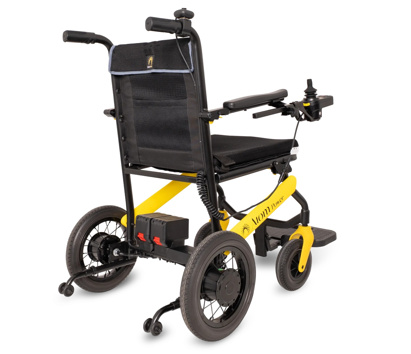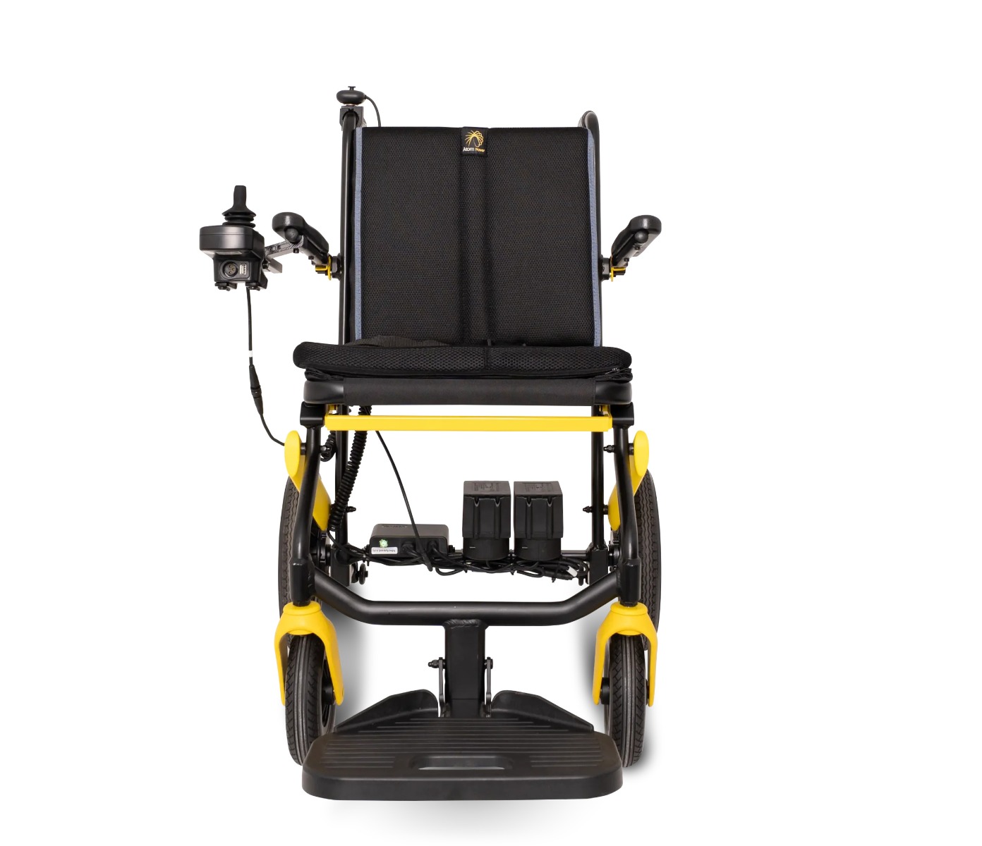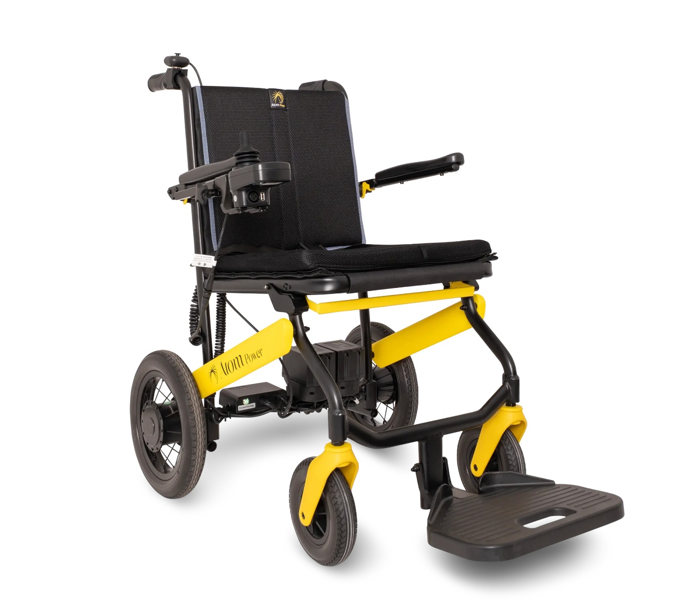 The Atom Power is a folding electric wheelchair that partners functionality and usability with an eye-catching design. Feel bold, proud and empowered with the Atom Power’s striking yellow features.