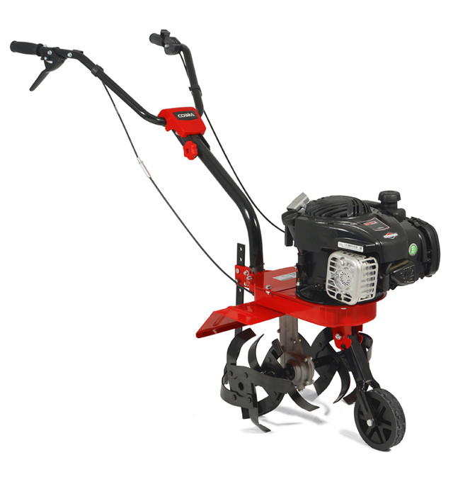 With exceptional performance and style, the Cobra T40B Cultivator is powered by a Briggs & Stratton 500E series engine has a tilling width of 16″ and 4 high quality steel tines.