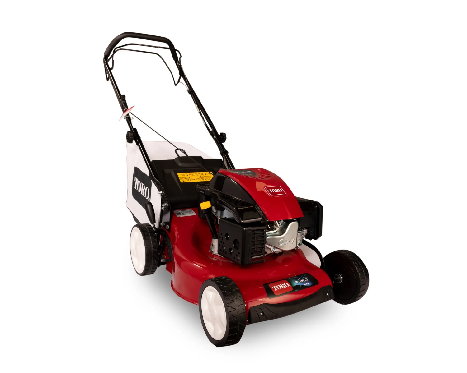 Product Features Bagger, Deck Washout Port, Easy Cleaning, Mulching Mower, Petrol Powered, Rear Discharge, Self-Propelled